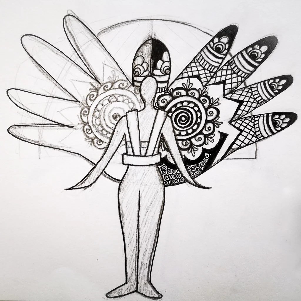 A carnival backpack piece made for Belfast Mela to celebrate the art of mehndi/henna. This piece was created to be worn at carnivals and festivals to celebrate the beauty and significance of the artform of Mehndi.