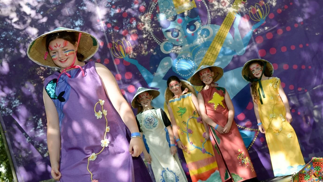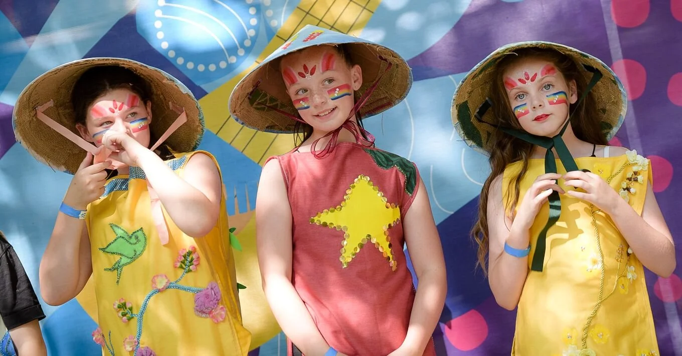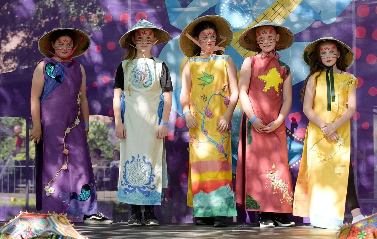 The young people’s creations made during the Cultural Threads project were displayed in a fashion showcase at Belfast Mela in 2019. Garments and headpieces were modelled by their designers and by members of associated community groups. In partnership with Oxfam Vintage Belfast, a curated selection of vintage clothing was also modelled along with protest signs designed by the children and young people involved in the project.